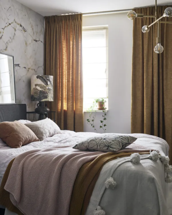 Maintenant, il devient vraiment douillet, car nous allons ajouter des rideaux ! Rien de tel que de se réveiller tranquillement le matin, sans les rayons éclatants du soleil. Mais soyons honnêtes, les rideaux ne sont pas seulement fonctionnels, ils apportent tellement d'ambiance à la pièce ! Ils donnent cet aspect chaleureux qui vous rend spontanément heureux.