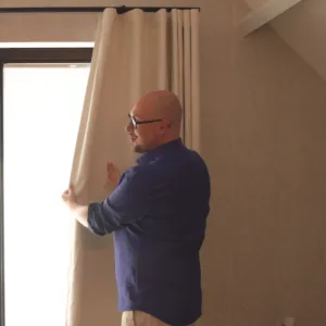 Comme Bart, vous souhaitez créer une atmosphère agréable et chaleureuse dans votre salon ? Bart Appeltans a opté pour des rideaux transparents de couleur naturelle dans le cadre de notre relooking de Living Happiness.