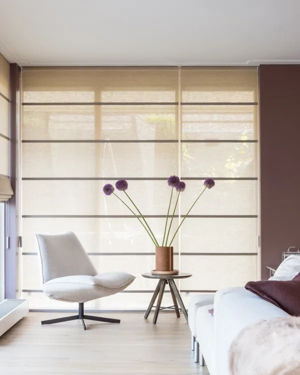 Les stores romains ou stores bateaux sont particulièrement élégants, car ils sont divisés en rangées de tissu qui se replient lorsque vous ouvrez le store à l'aide d'un cordon. Cette décoration de fenêtre stylée apporte une touche personnelle à votre intérieur. Les stores romains peuvent être livrés avec ou sans baleines et vous avez le choix parmi de nombreux types de tissus et de transparences. Nous effectuons les mesures gratuitement, fabriquons le store romain sur mesure et nous l'installons également pour vous.