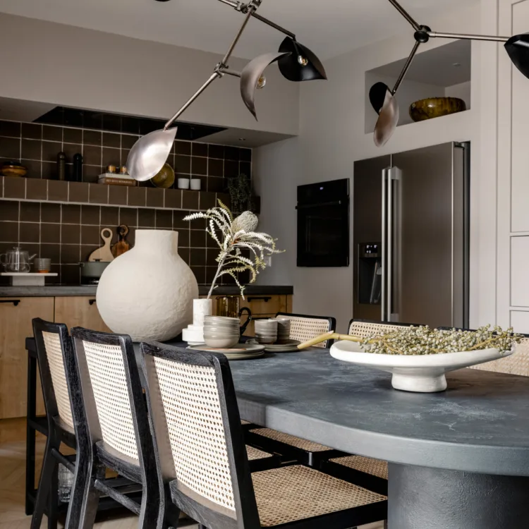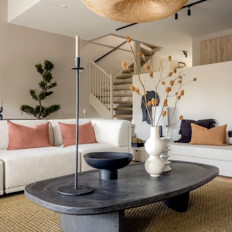 Dans la tendance Japandi, de nombreux matériaux naturels dans des tons chauds sont utilisés pour des raisons minimalistes. Du bambou, du chêne, du washi ou du liège. Une palette de couleurs neutres (claires) avec tout au plus une petite touche de noir est indispensable. Ce sont essentiellement les touches de noir qui font la différence. Gardez la base de votre décoration intérieure sobre et lâchez-vous avec des accessoires ou un élément phare. Besoin d'aide pour décorer ? Nous serons heureux de vous aider avec des conseils en décoration intérieure !