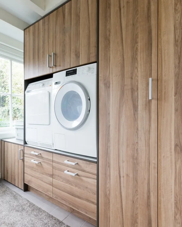 Votre meuble est entièrement fait sur mesure, afin qu'il s'intègre parfaitement dans l'espace que vous avez prévu à cet effet. Nous serons heureux de vous aider à organiser de manière optimale votre meuble pour machine à laver. Venez dans l'un des magasins et voyez ce que nous pouvons faire pour vous.