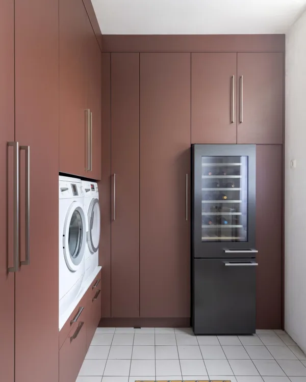 Un meuble de machine à laver, ou meuble pour machine à laver, peut bien sûr être étendu avec un intérieur sur mesure. Faut-il y ranger des produits de nettoyage, la planche à repasser, l'aspirateur ou autre chose ? Pour tout ce que vous voulez ranger, nous créons l'espace.