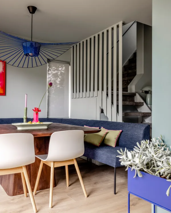 Gebruik strakke lijnen en minimalistische vormen als basis, en voeg karakter toe met vintage verlichting, retro accessoires en statement gordijnen.